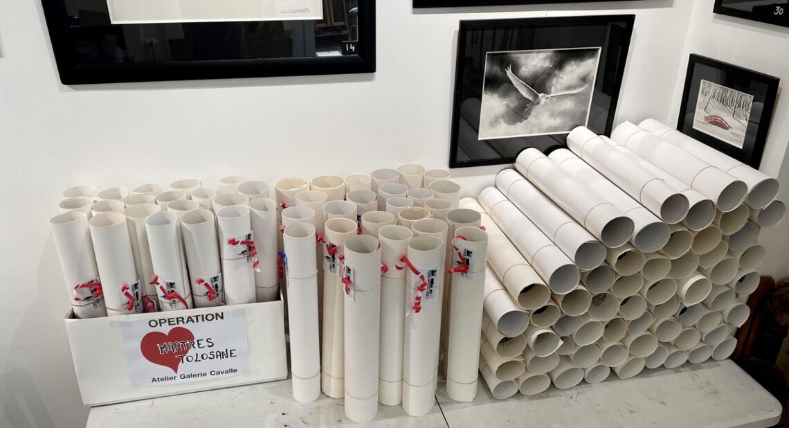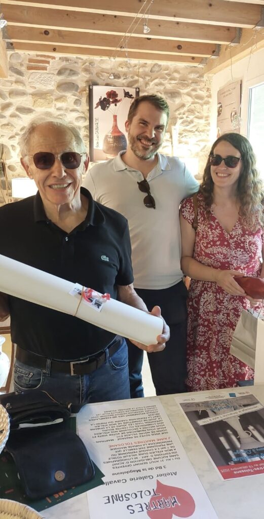 Sans aucune obligation d’achats, il suffisait de lire la phrase écrite J’AIME MARTRES-TOLOSANE et vous aviez en cadeau une édition d’art ou une lithographie originale d’aquarelle : paysage, marine etc. C’est le Hasard qui définit le cadeau reçu.